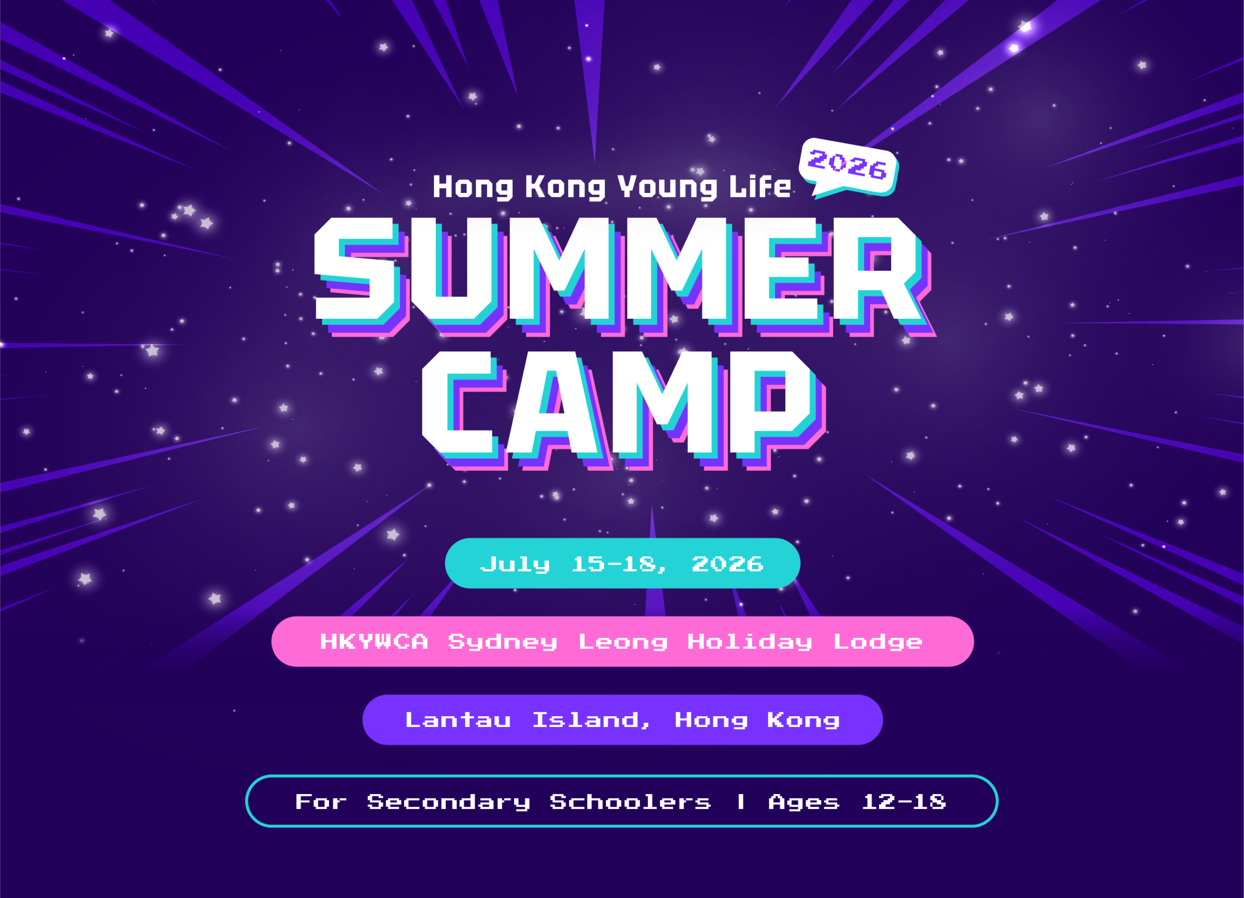 Summer Camp is for students in secondary school (aged 12-18 years at the start of camp). Campers from across Hong Kong are usually accompanied by their Young Life leader, church youth pastor, or invited by a friend who has a leader/pastor.